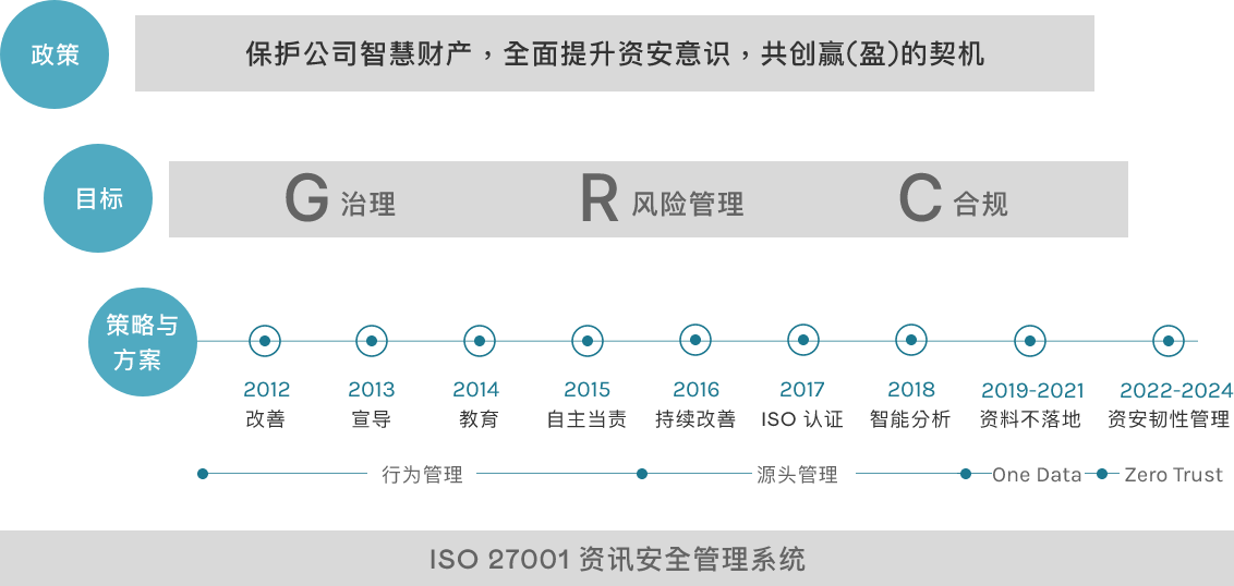jinnian金年会重视员工与合作伙伴的资讯资产安全,透过资讯安全管理组织,推动及落实资讯安全管理,保护公司智慧财产、客户资料及提升员工资安意识, 持续完备风险管控机制与提升防护措施,强化公司资讯安全。